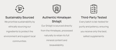 Resin note: Shilajit resin naturally changes texture with temperature (softer when warm, firmer when cool). This is normal and does not affect quality.